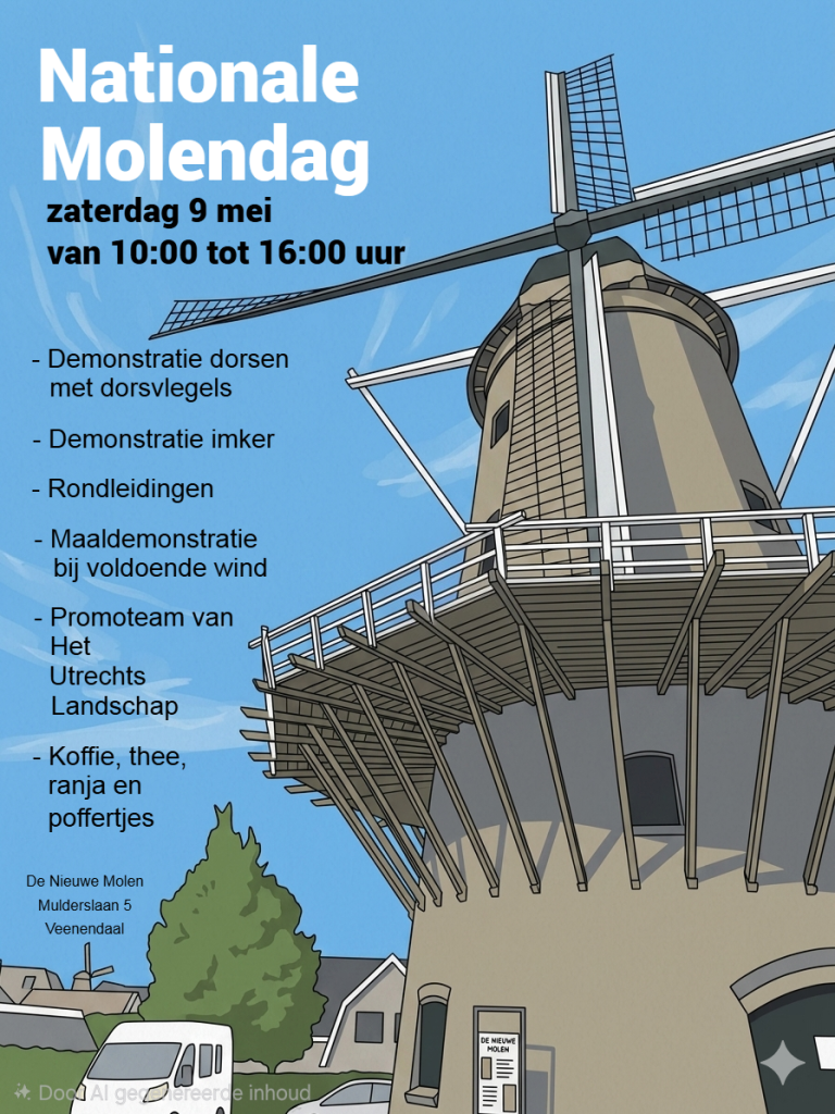 Heeft u vragen, opmerkingen of bestellingen, belt u dan bovenstaand telefoonnummer of stuur een email aan De Nieuwe Molen.